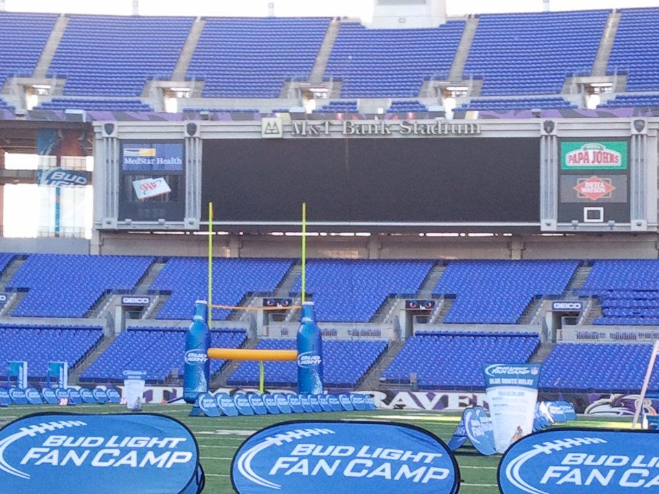 Bud Light Fan Camp was one of the most incredible experiences I have ever had the opportunity to partake in. It was a dream job for a kid right out of college. I was hired by Fusion Performance Marketing out of St. Louis for the 2011 NFL Season as the “East Coast Team”. Four of us went to 18 markets throughout that season setting up the Bud Light Fan Camp Experience. In a nutshell, this was a fan experience where teams of 4 would compete against each other in events such as field goal kicking, obstacle course, pass precision, tackling dummies, ball catching, and long snapping. The winning team of each market was given an all expenses paid trip to Honalulu for the Pro Bowl, where they would compete against all the other national winners for a chance at going to the Super Bowl! Needless to say, the stakes were high. Take into account the amount of Bud Light consumed at these things, these fans showed up passionate and got wild.